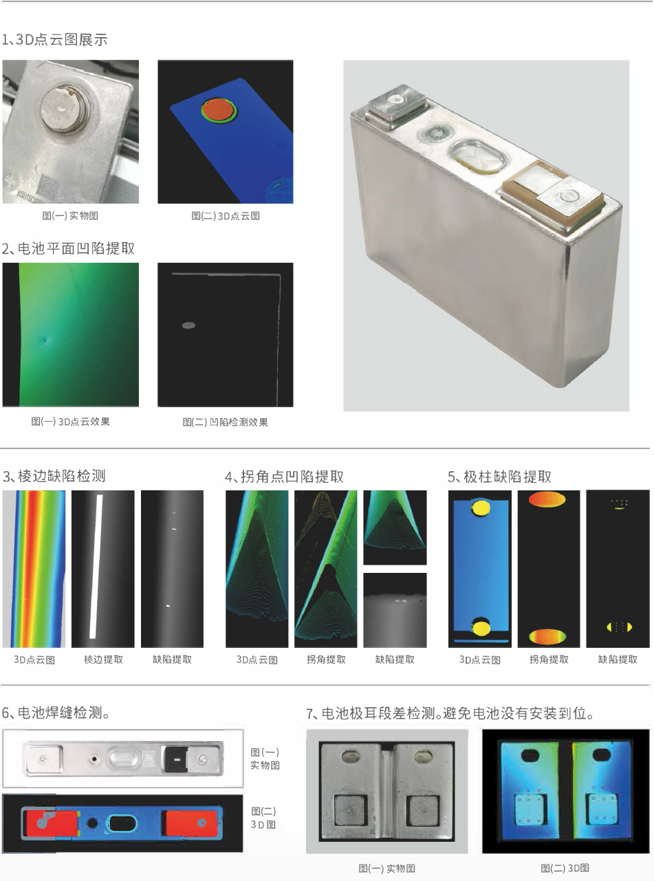 檢測(cè)優(yōu)勢(shì) 不需要額外光源:消除光源安裝的影響 段差測(cè)量:可檢測(cè)焊接面和周邊的高度差 準(zhǔn)確測(cè)量:可結(jié)合2D灰度圖像計(jì)算 快速檢測(cè):一次掃描可計(jì)算任意點(diǎn)的平整度