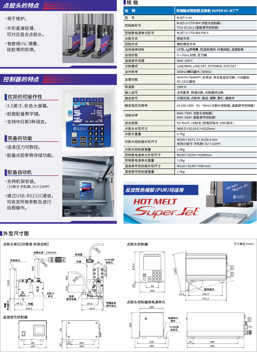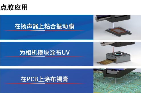 High viscosity, non-contact spray dispenser Applicable viscosity range can correspond to 1000000mPa's to achieve excellent drop position accuracy Replaceable push rod
